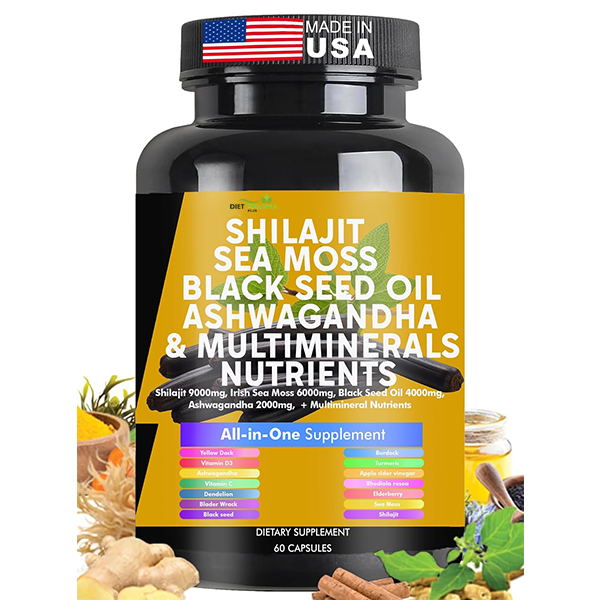 Shilajit Sea Moss Black Seed Oil Ashwagandha Burdock Vitamin C & D3 with Elderberry rhodiola rosea Dandelion Yellow Dock Turmeric ACV